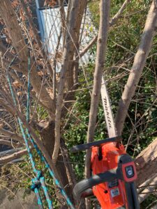 助っ人のバイトさんに手伝ってもらいロープを使いながら安全に枝を下ろしていきます。