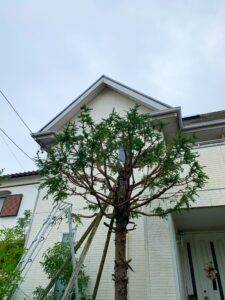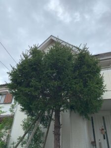 お隣様へ枝が越境してしまい剪定での管理が難しいことから今回伐採となりました。