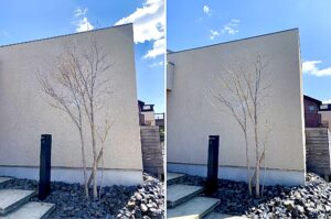 こちらも、枝が建屋に擦っているので剪定していきます。