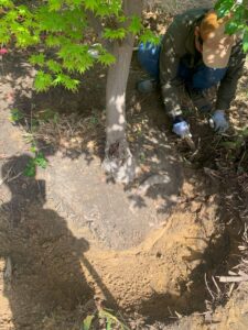 出てきた根っこを切りながら掘り進めていきます